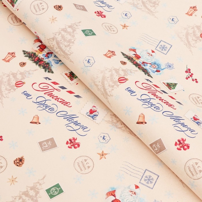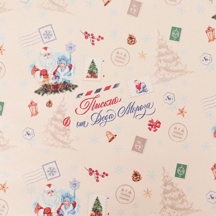 Новый год. Бумага упаковочная крафт белый "Послание", 70 х 100 см,1 лист,