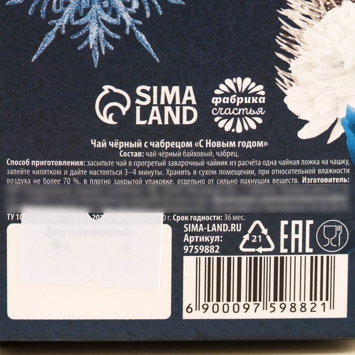 Чай чёрный «С Новым годом» с чабрецом, в коробке конфете, 100 г.