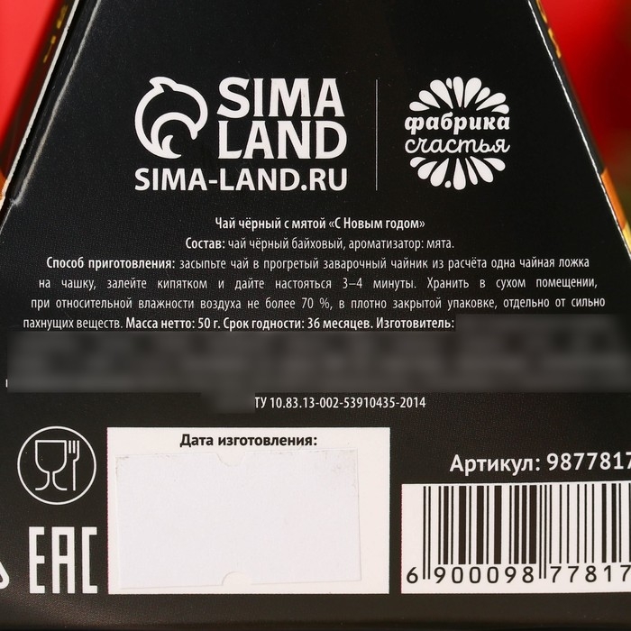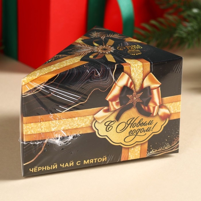 Новый год! Чай чёрный в коробке-тортике «С новым годом», вкус: мята, 50 г.