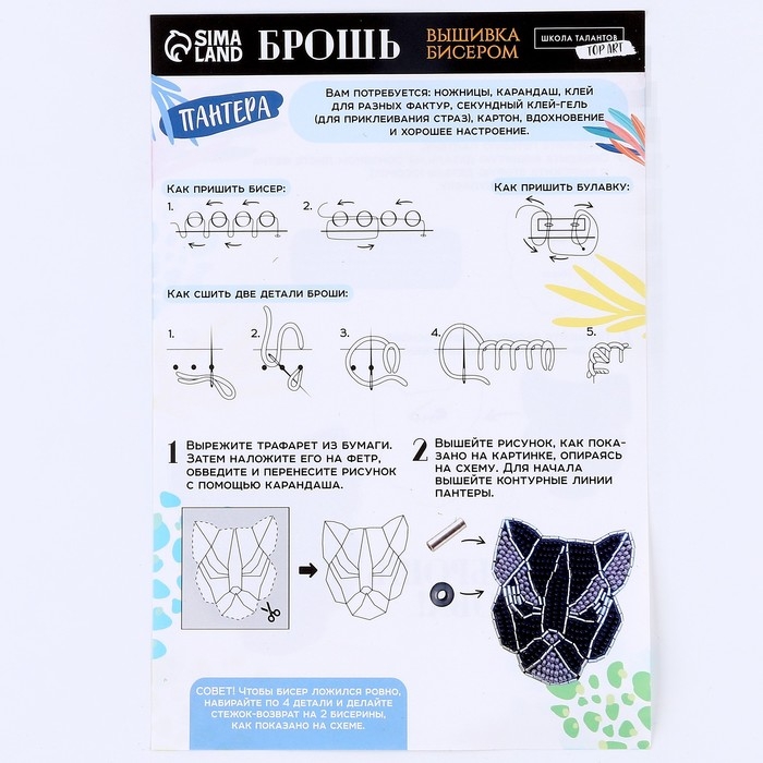 Вышивка бисером. Брошь «Черная пантера», набор для творчестваа