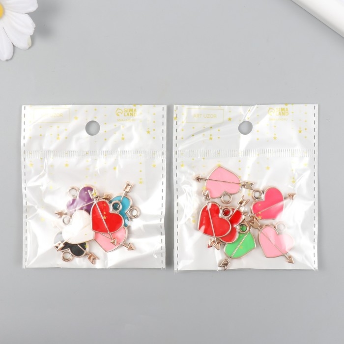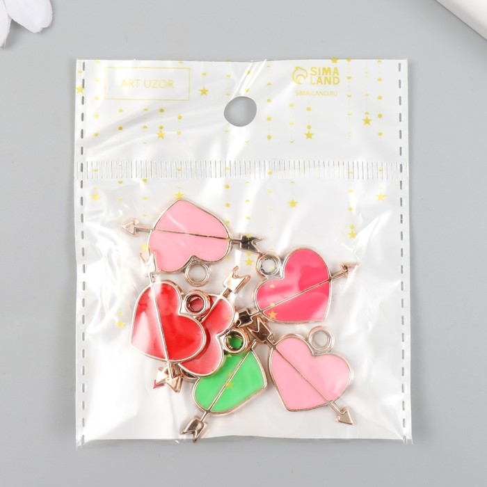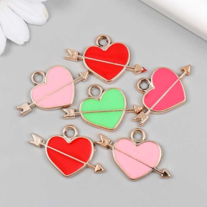 Декор для творчества пластик под металл "Сердце со стрелой" МИКС набор 6 шт 0,2х3,4х2,2 см