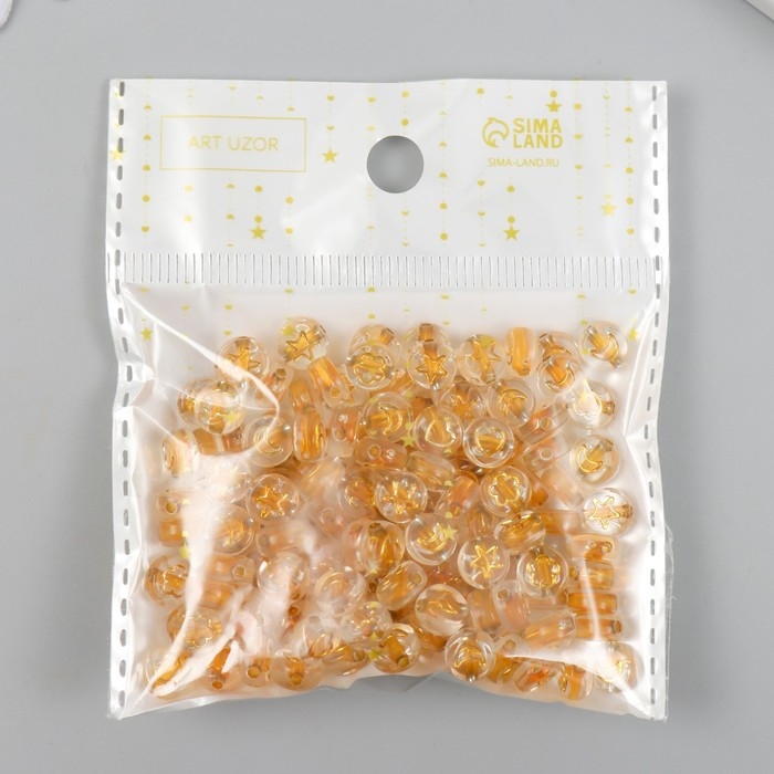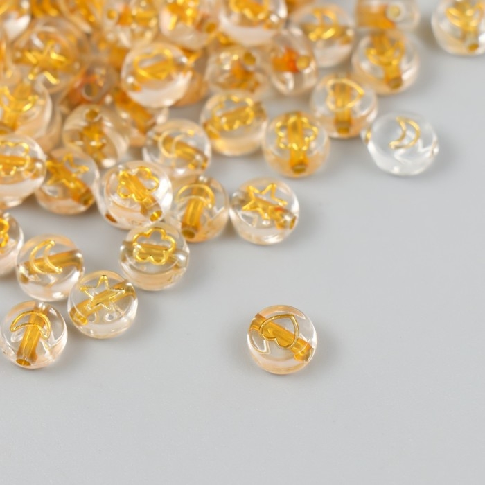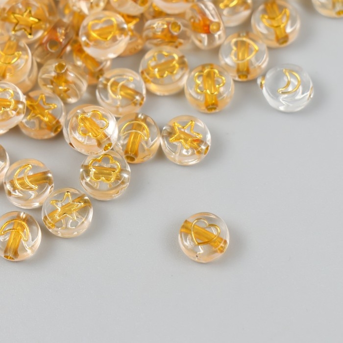 Бусины для творчества пластик "Сердечки и звёзды" золото набор 20 гр 0,4х0,7х0,7 см