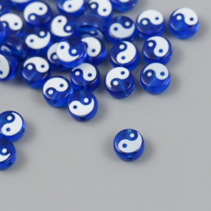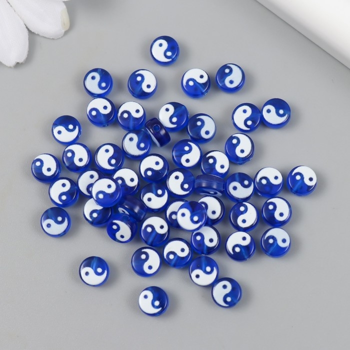 Бусины для творчества пластик "Инь-ян" бело-синий набор 50 шт 0,4х0,7х0,7 см