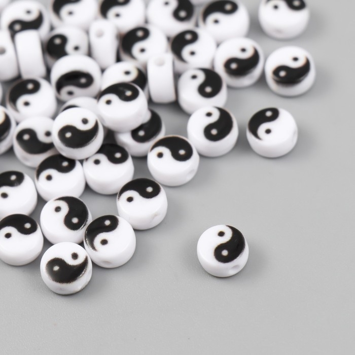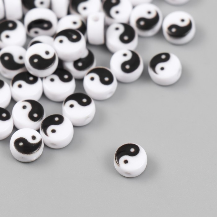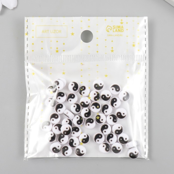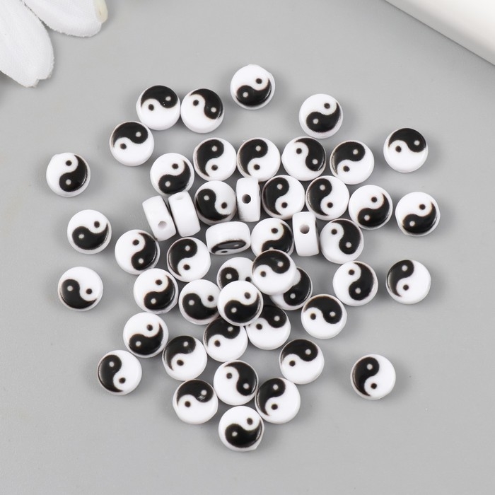 Бусины для творчества пластик "Инь-ян" бело-чёрный набор 50 шт 0,4х0,7х0,7 см