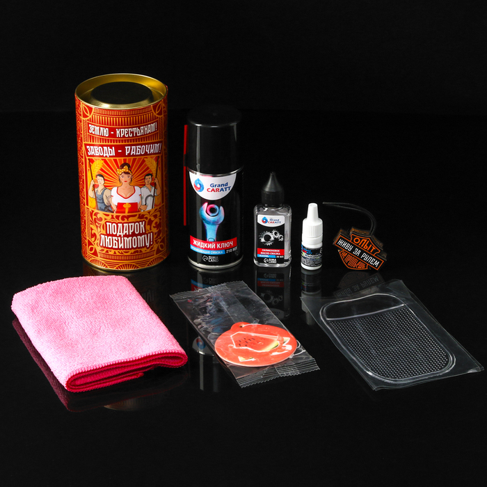 Подарочный набор автотоваров - отличный выбор для автолюбителя! Включает в себя все необходимые аксессуары для комфортной и безопасной езды. С этим набором ваше вождение станет еще удобнее! В состав набора входят различные аксессуары, которые могут пригодиться каждому автолюбителю: