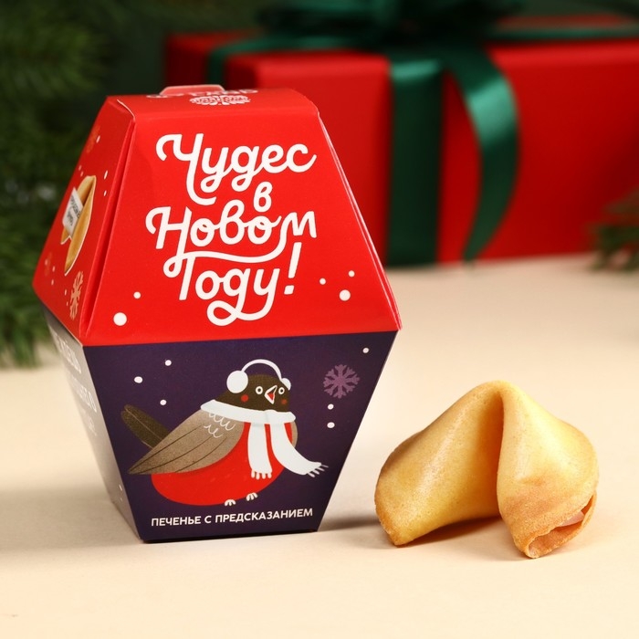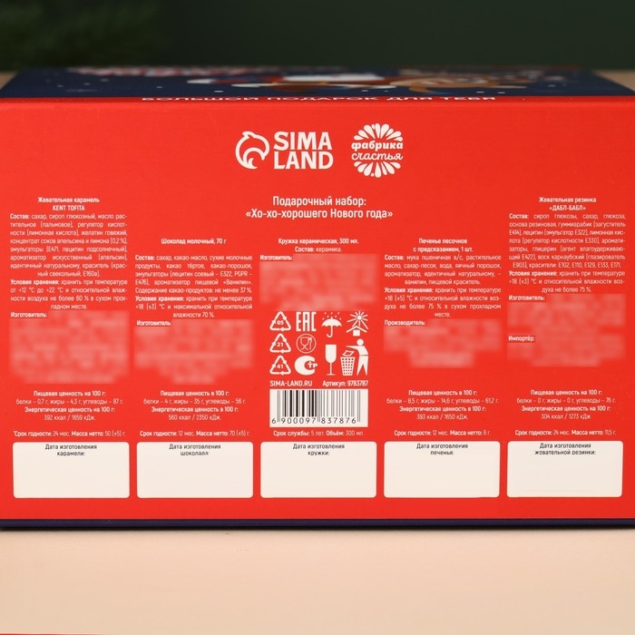 Большой гифтбокс «Хо-хо-хорошего Нового года»: жевательная конфета, молочный шоколад, кружка, печенье с предсказанием, жевательная резинка.