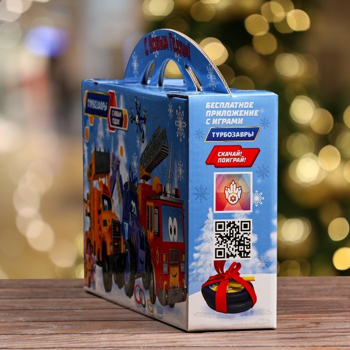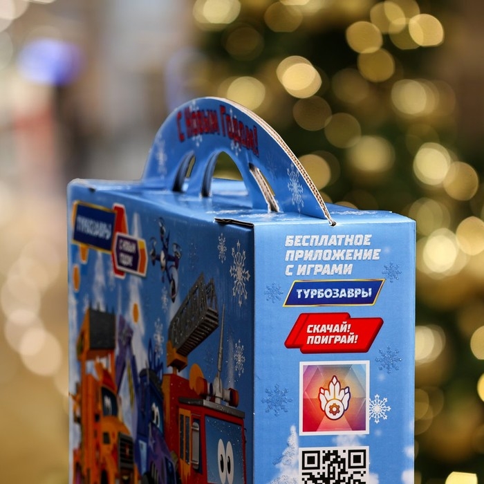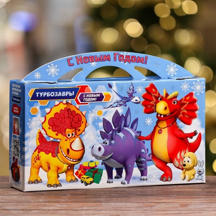 Новый год. Подарочная коробка "Турбозавры", Портфель , 37 х 8 х 20,2 см.