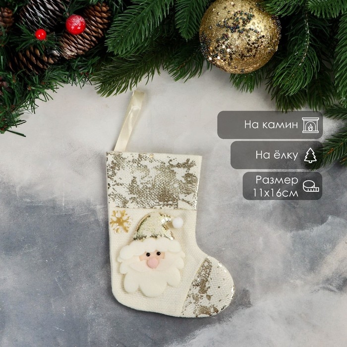 Носок для подарков "Дед Мороз, поталь" 11х16 см, золото