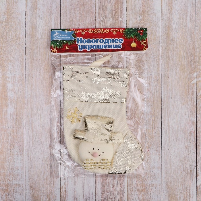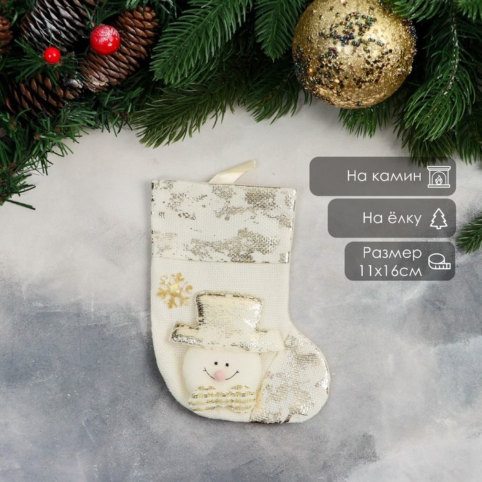 Носок для подарков "Снеговик, поталь" 11х16 см, золото