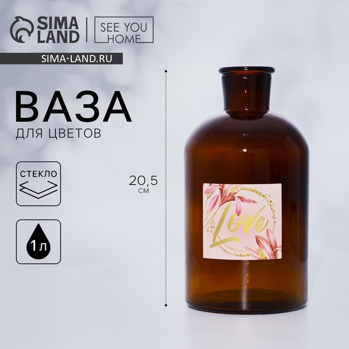 Стильная стеклянная ваза для цветов «Love объемом 1 литр.