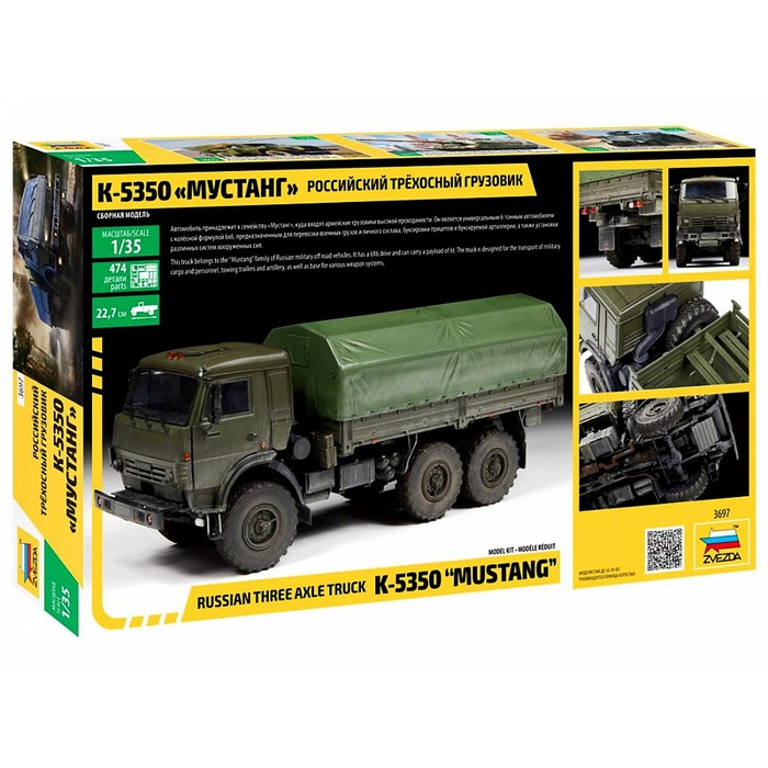 Сборная модель-автомобиль «Российский трехосный грузовик Мустанг», Звезда, 1:35, (К-5350)