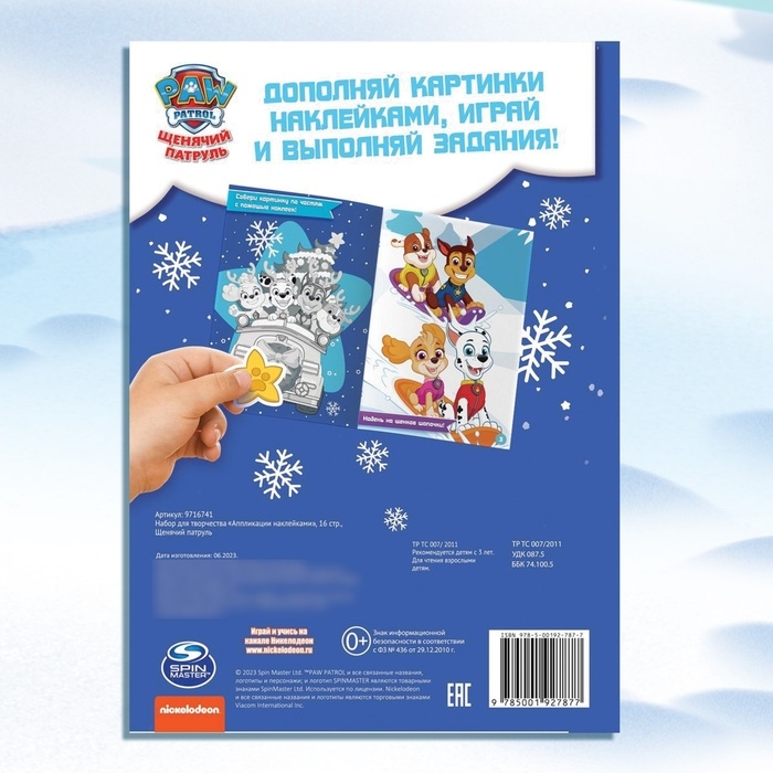 Новый год! Книга с наклейками «Аппликации наклейками», 17 × 24 см, 16 стр., Щенячий патруль