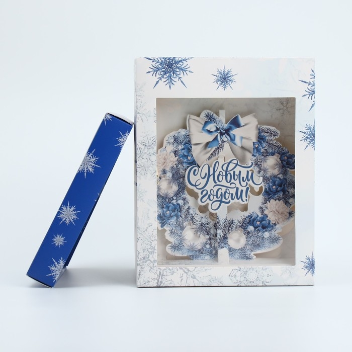 Новый год. Коробка самосборная, с окном, "Счастливого Рождества", 16 х 35 х 12 см.