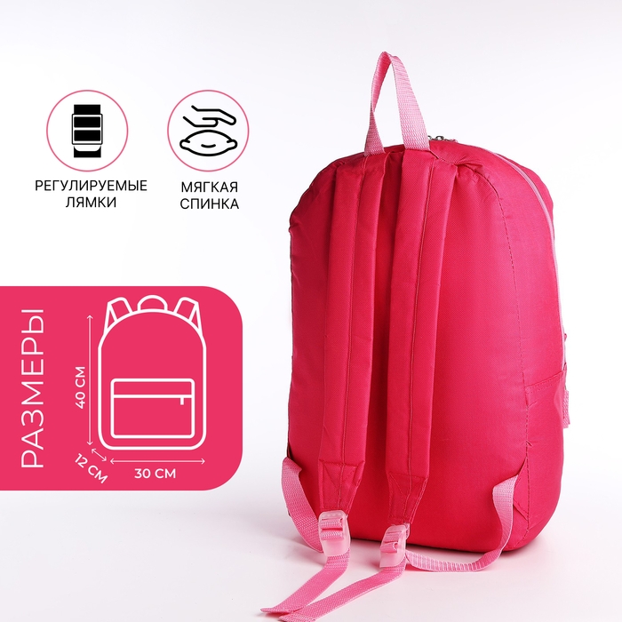 Рюкзак школьный на молнии, наружный карман, цвет фуксия