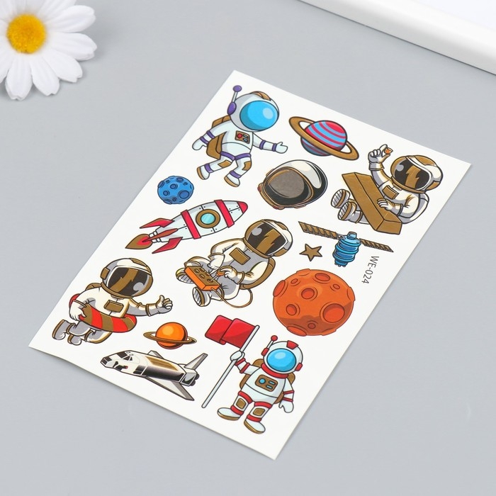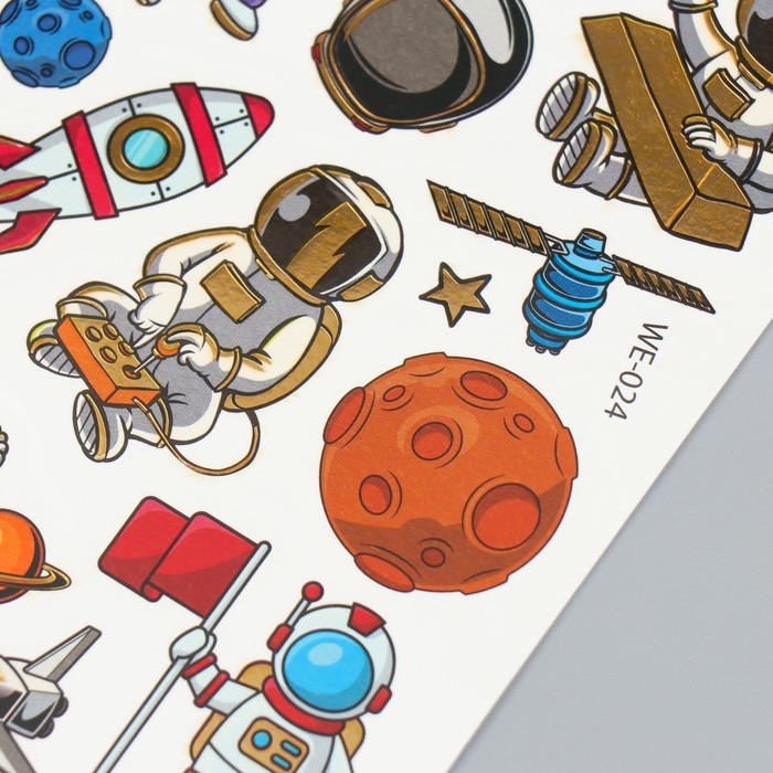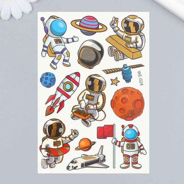 Татуировка на тело цветная "Космический герой" с золотом 15х10,5 см
