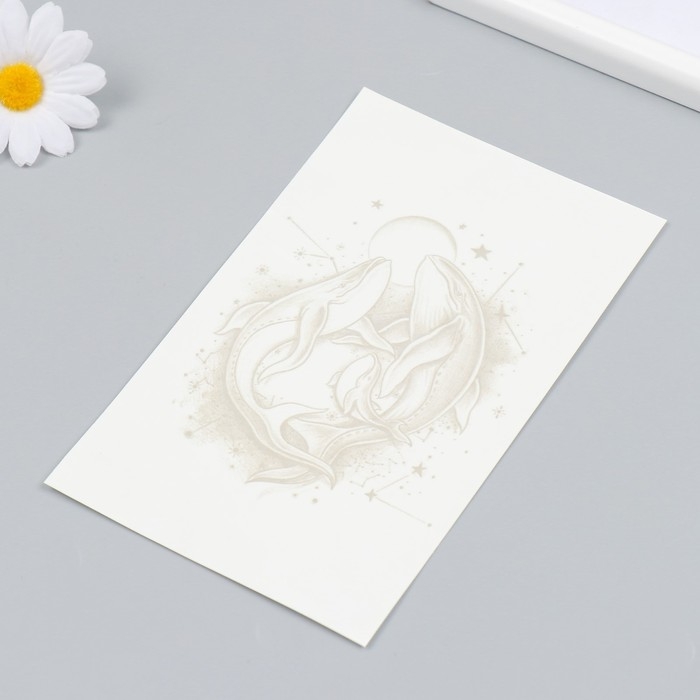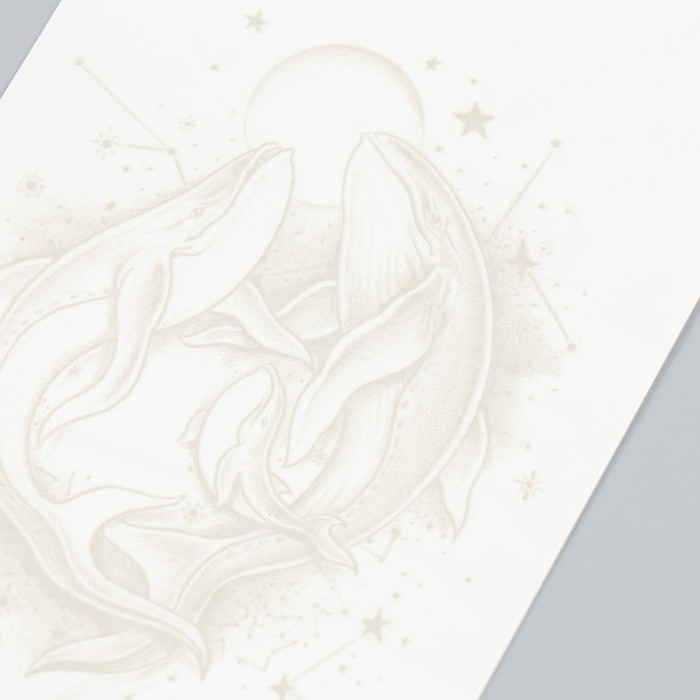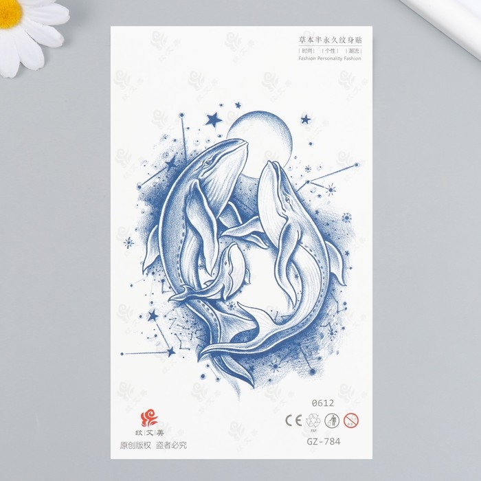 Татуировка на тело синяя "Киты при луне" 18х11 см