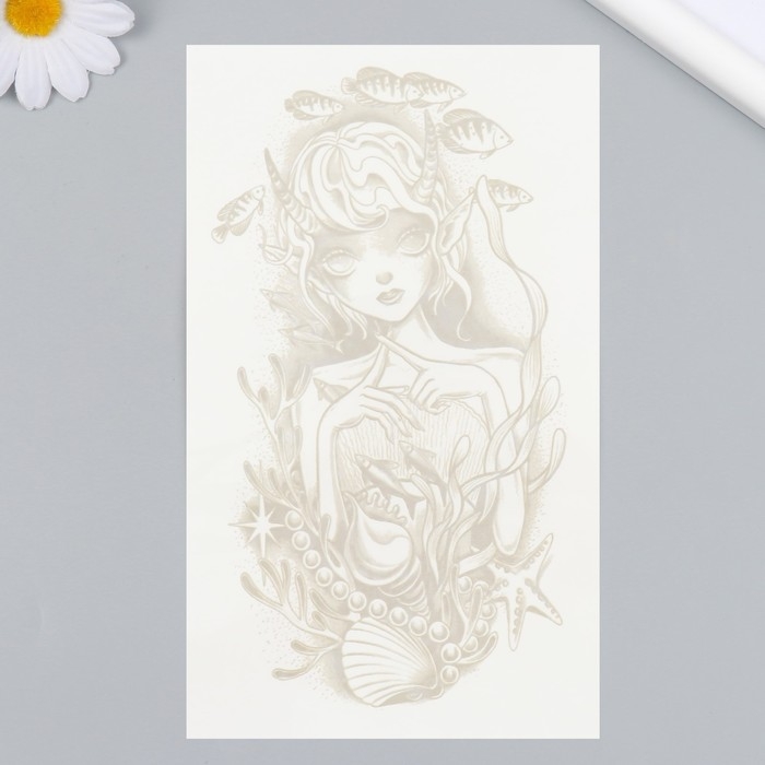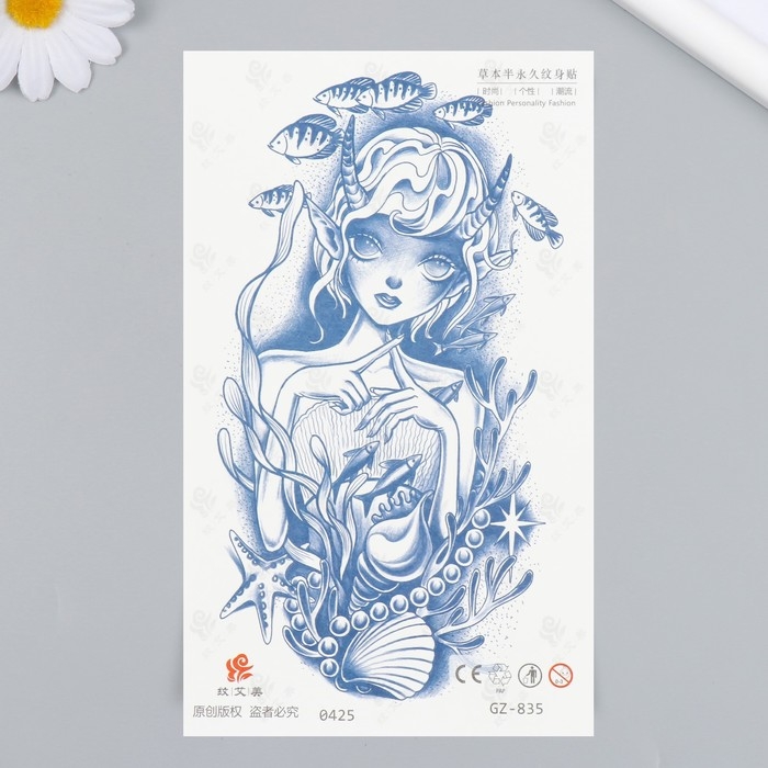 Татуировка на тело синяя "Подводная девочка" 18х11 см