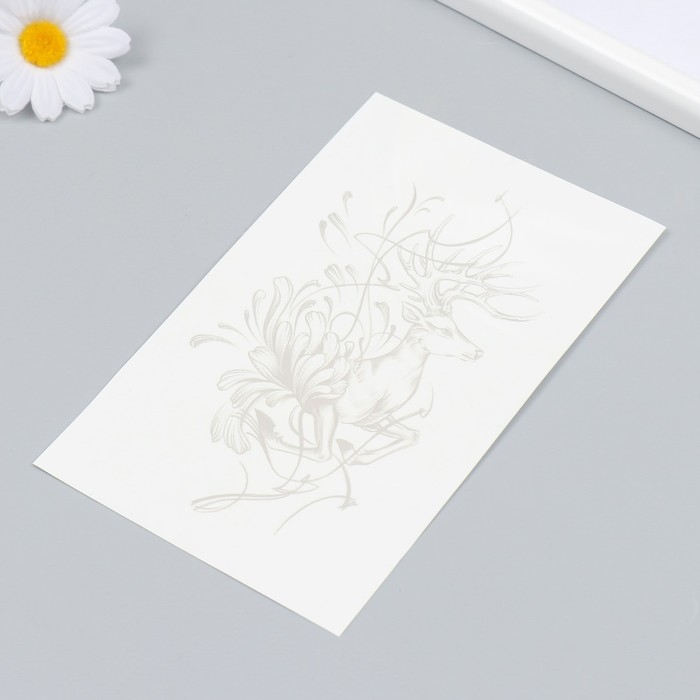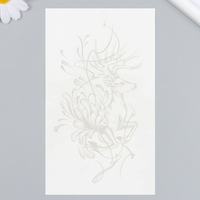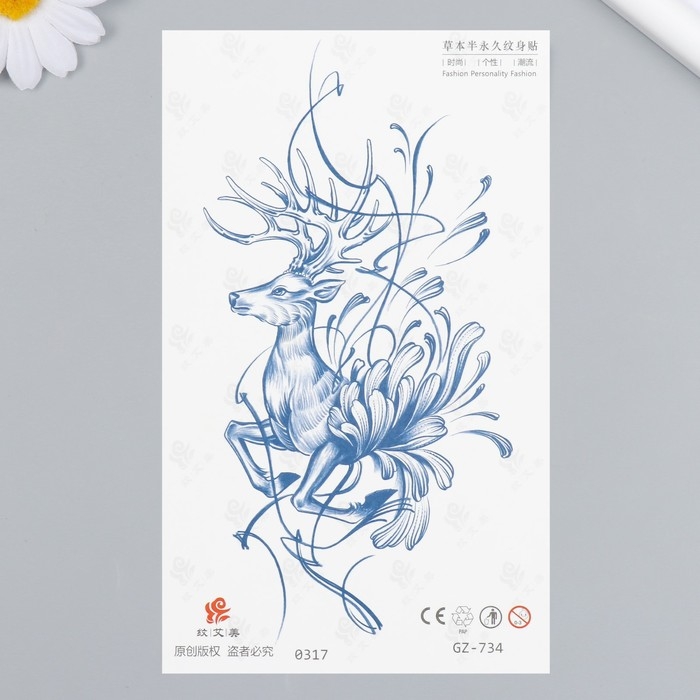 Татуировка на тело синяя "Олень в линиях" 18х11 см
