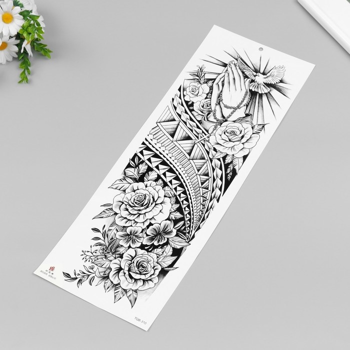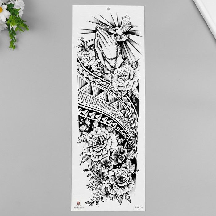 Татуировка на тело черная "Голубь и цветы" 48х17 см