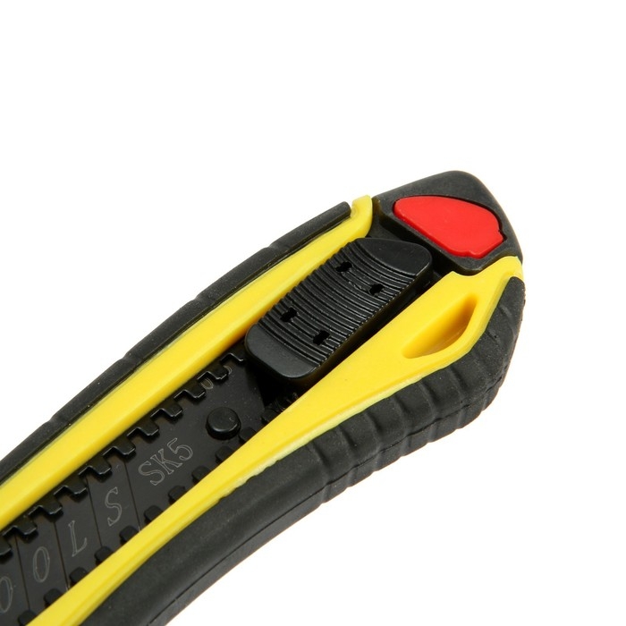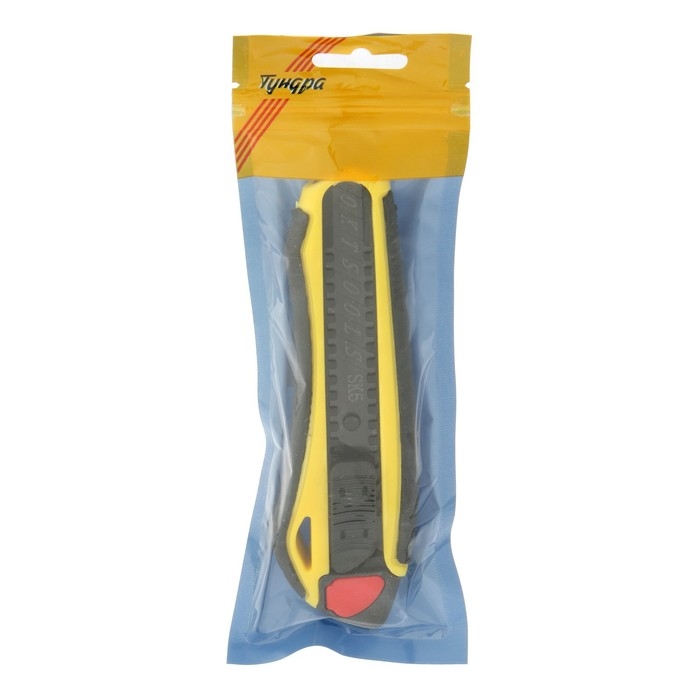 Нож универсальный ТУНДРА, 2К корпус, металлическая направляющая, лезвие SK-5, 18 мм