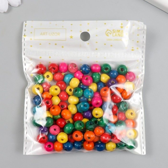 Бусины для творчества дерево "Разноцветные" d=0,8 см набор 20 гр