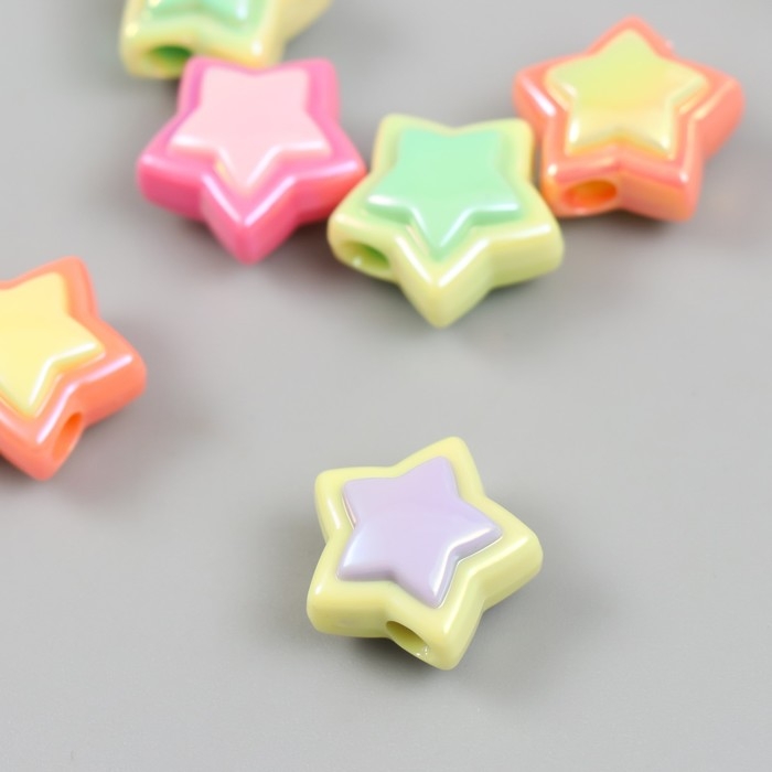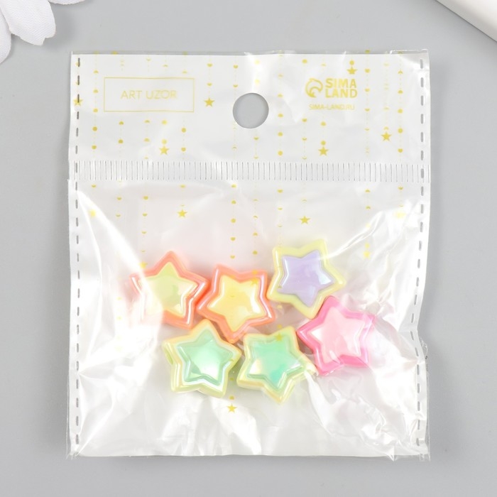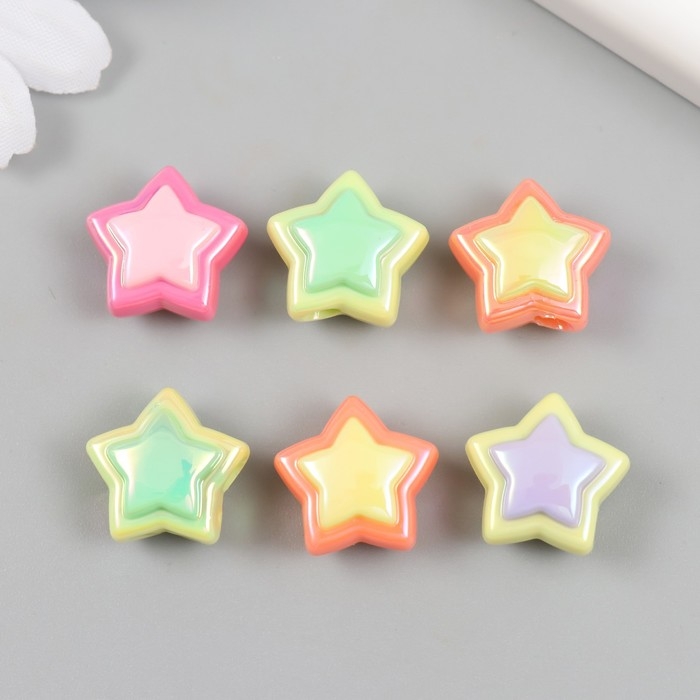 Бусина для творчества пластик набор 6 "Звёздочка" цветная с перламутром МИКС 1х1,7х1,7 см