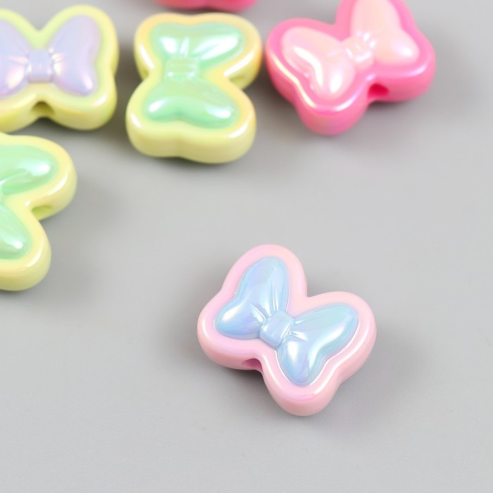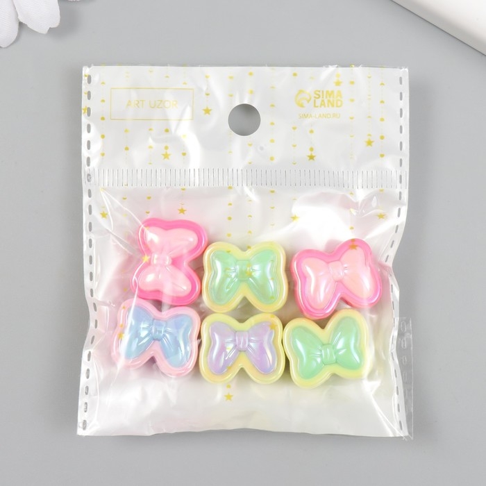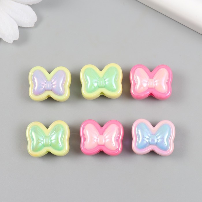 Бусина для творчества пластик набор 6 шт. "Бант" цветная с перламутром МИКС 1,7х2 см