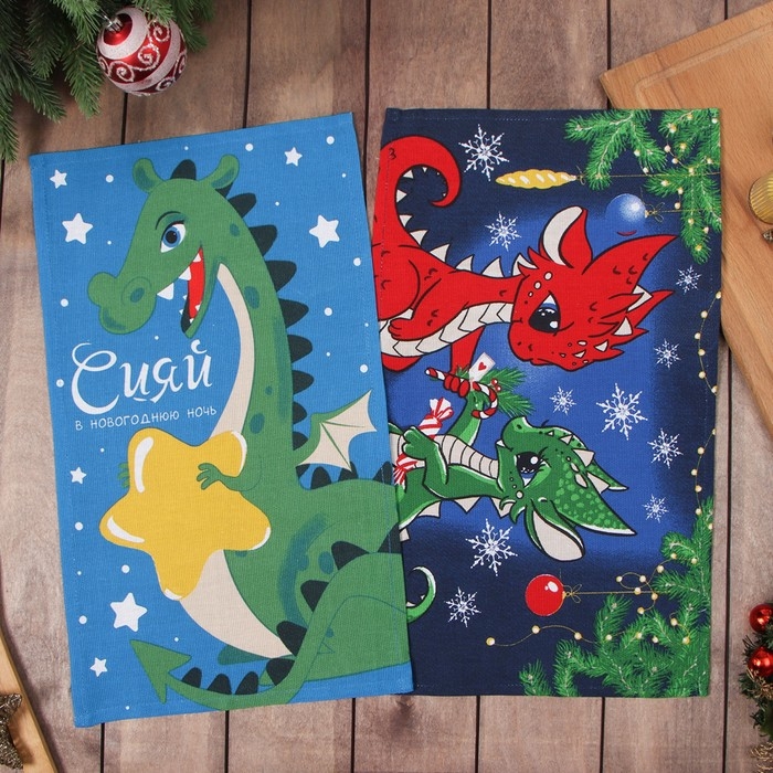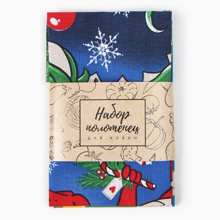 Новый год. Набор полотенец Доляна "Волшебство" 28х46 см - 2 шт, 100% хл, рогожка 164 г/м2
