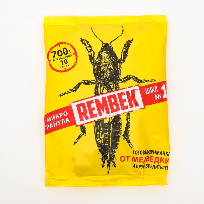 Рембек от медведки – высокоэффективное средство для защиты сельскохозяйственных культур от медведки и проволочника с особо привлекательным для вредителей вкусом и запахом. Обладает 100 % эффектом уничтожения насекомых, их яиц и личинок. Активным компонентом выступает борная кислота. Вещество не вредит человеку, в отличие от токсичных инсектицидных средств, у насекомых, при попадании внутрь вызывает паралич, смерть.