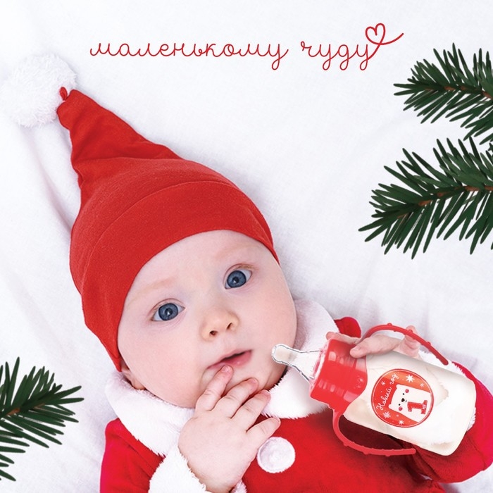 Бутылочка для кормления «Мой 1 Новый год», классическое горло, 150 мл., от 0 мес., цилиндр, с ручками, пожарочная упаковка, Крошка Я