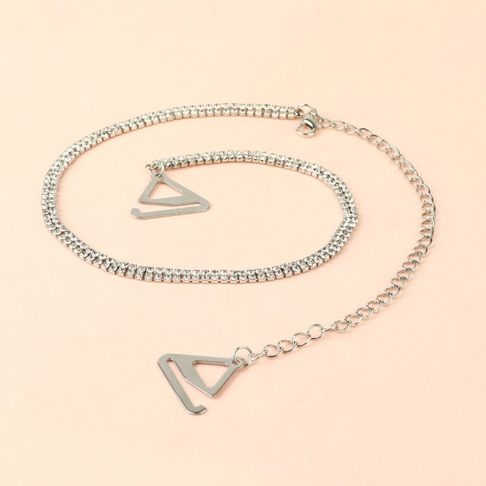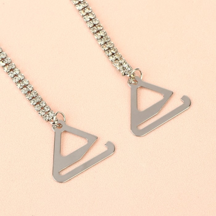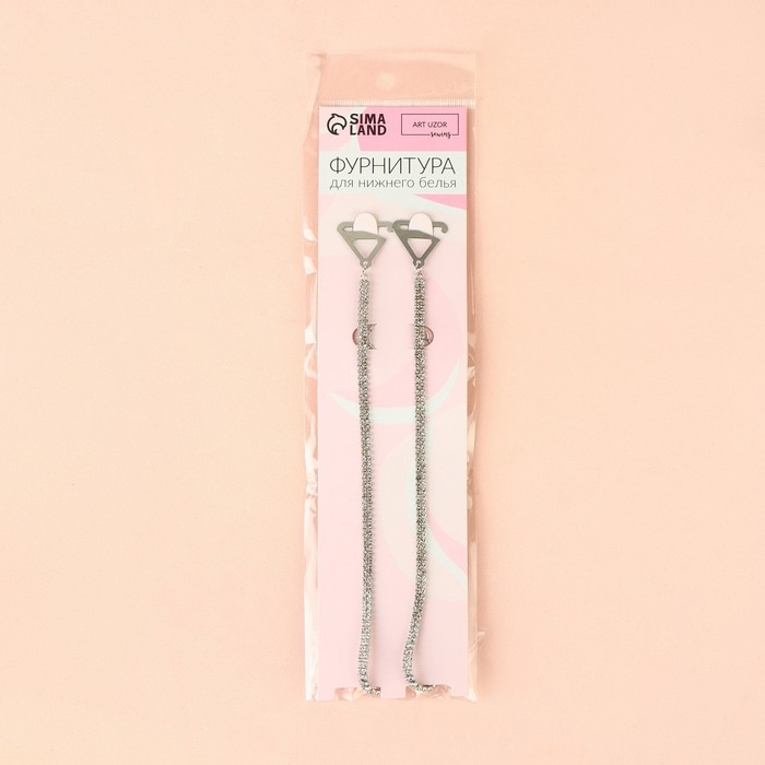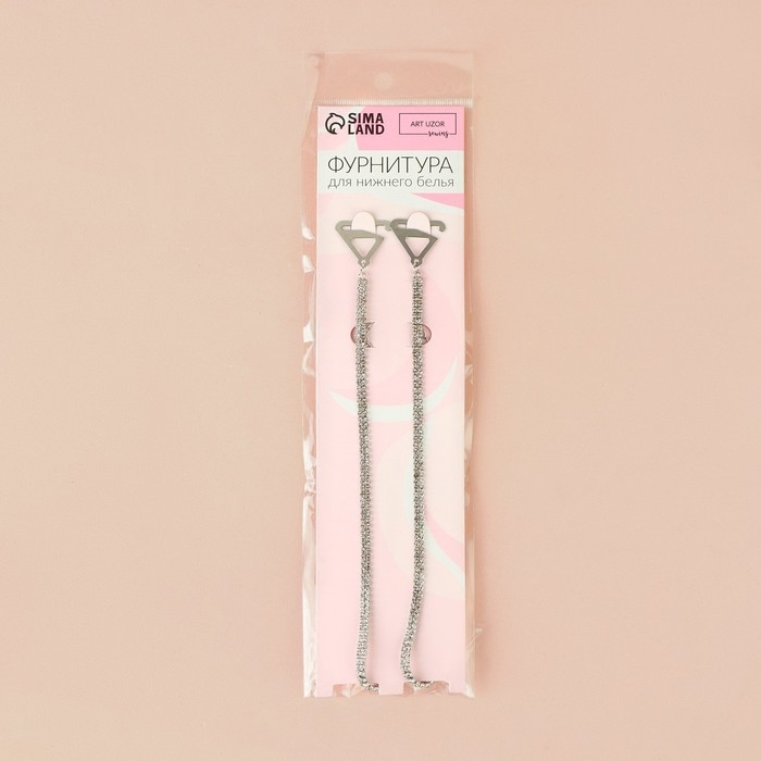 Бретели декоративные со стразами, фурнитура металл, 4 мм, 45 см, пара, цвет серебряный