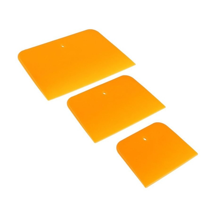 Автомобильный шпатель — это набор из трёх пластиковых инструментов разного размера, выполненный в жёлтом цвете. Он предназначен для удаления льда и снега со стёкол автомобиля, а так же для наклейки тонировочной пленки. Инструменты изготовлены из качественного пластика, лёгкого и прочного материала.