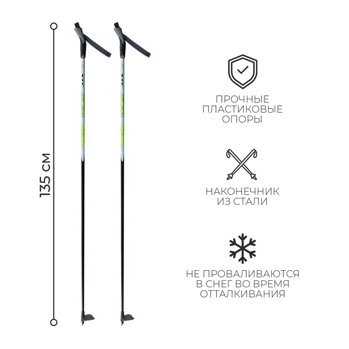 Палки лыжные стеклопластиковые, длина 135 см, цвета МИКС