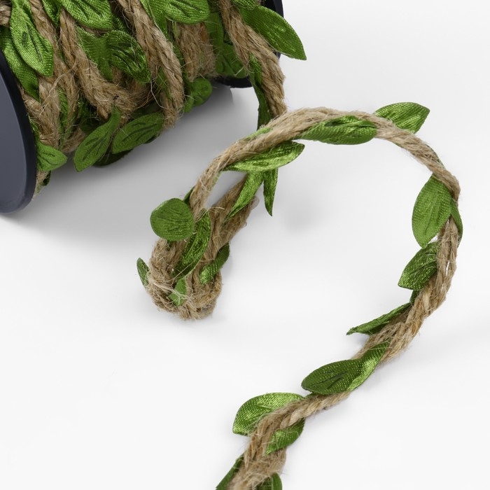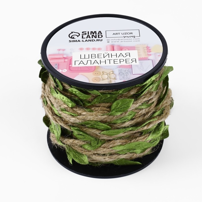 Тесьма декоративная холщовая «Листья», 25 мм, 9 ± 0,5 м, цвет бежевый/зелёный