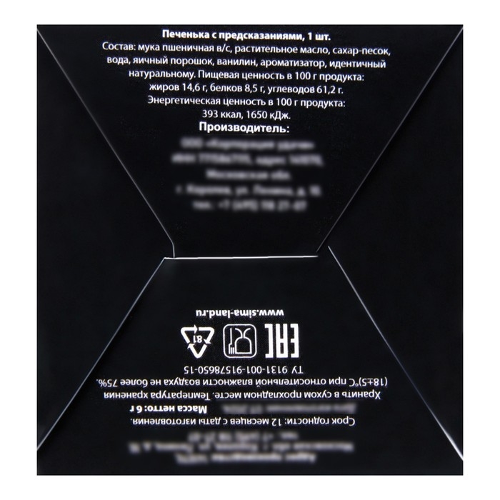 Печенье песочное с предсказаниями "Стандарт", 12 шт., 84 г