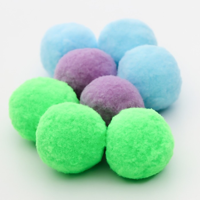 - Безопасный материал: плюшевые шарики изготовлены из мягкого текстиля, что делает их безопасными для жевания и игры.
