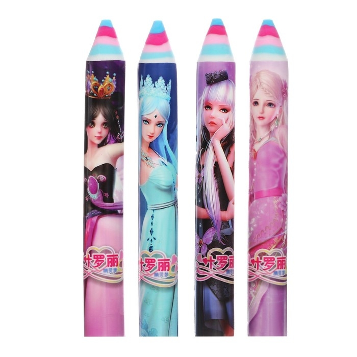 Ластик фигурный в форме карандаша "Принцесса", штрихкод на штуке, МИКС