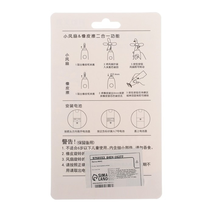 Ластик электрический, работает от батареек (батарейки в комплект не входят), МИКС