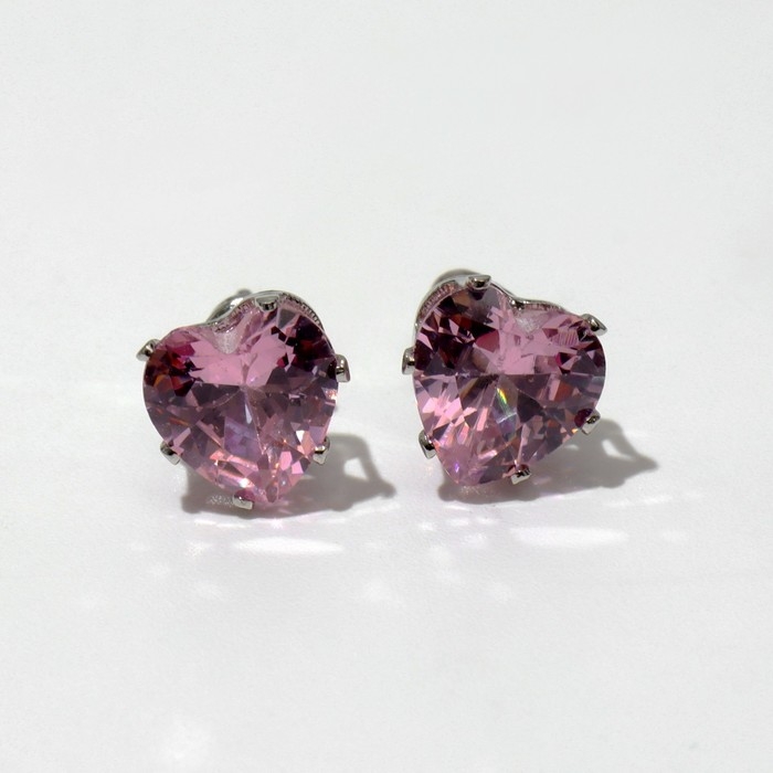 Набор 2 предмета: серьги, глиттер «Сердце», цвет розовый в серебре, цвет глиттера МИКС