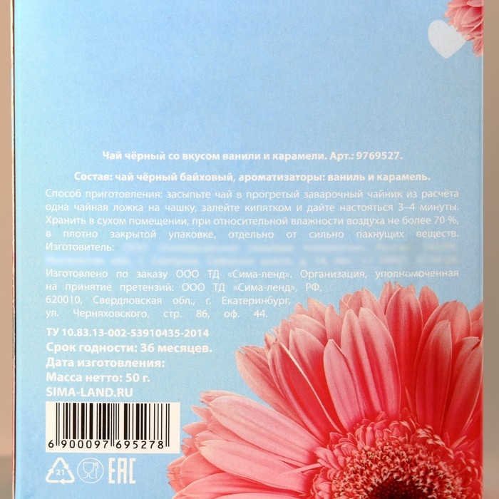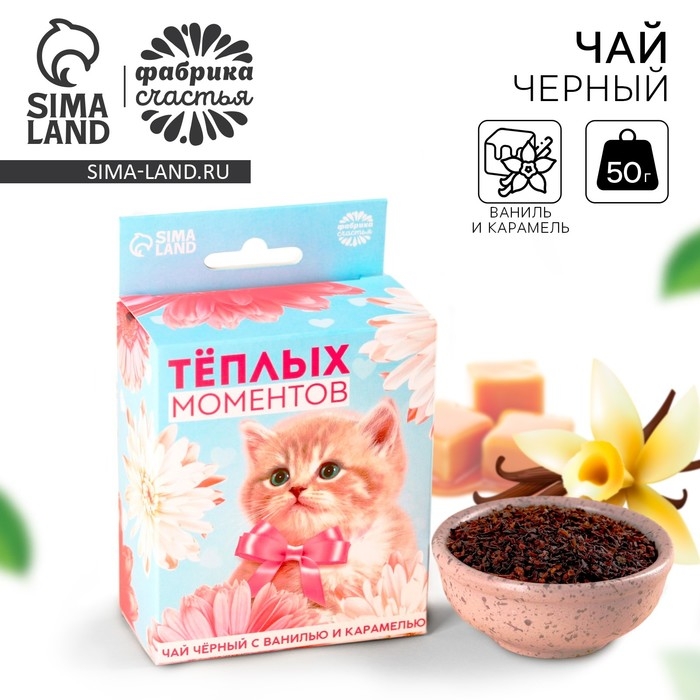 Чай чёрный со вкусом ваниль и карамель «Тёплых моментов» с европодвесом, 50 г.