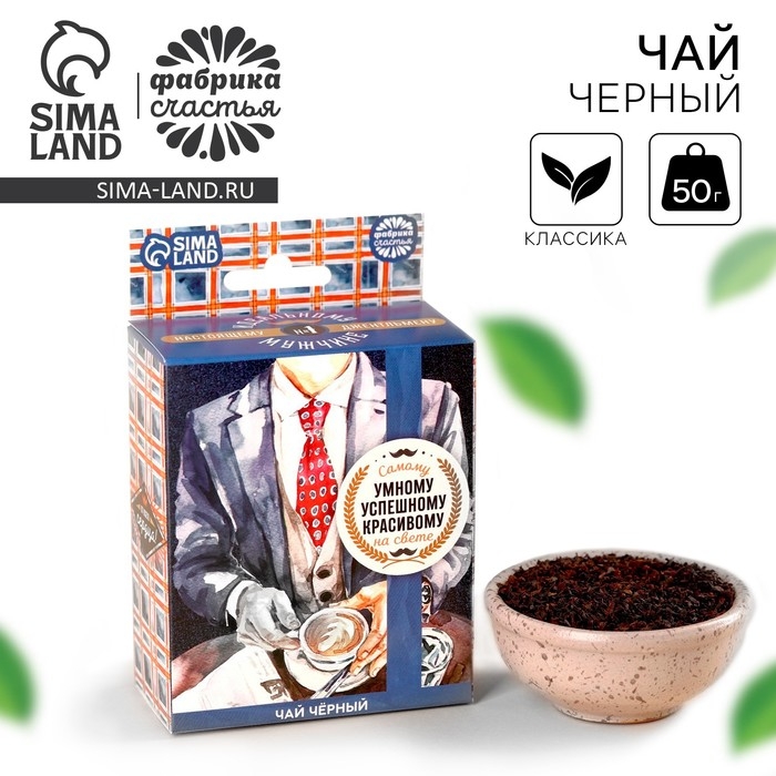 Чай чёрный «Умному, успешному, красивому» с европодвесом, 50 г.