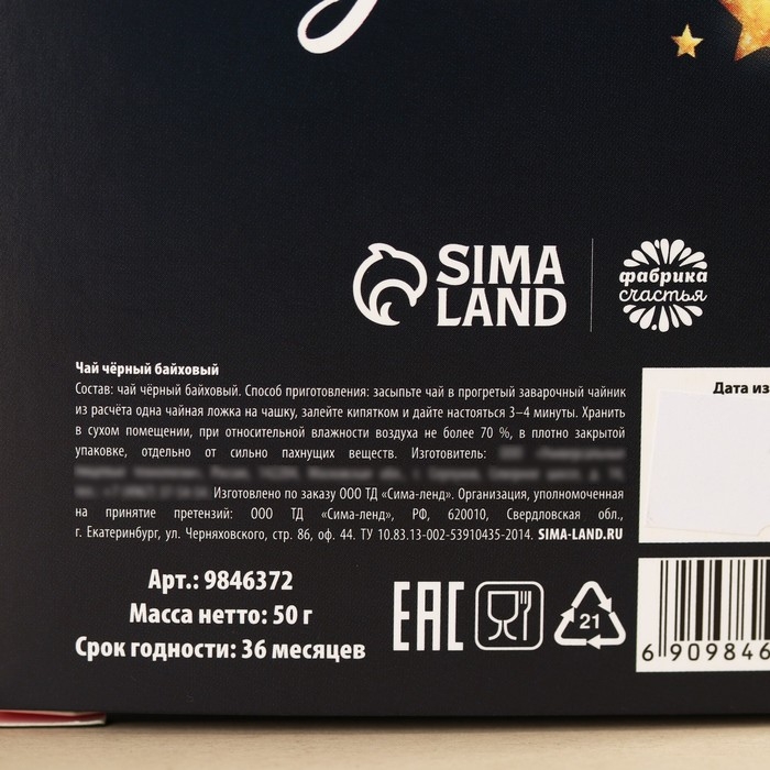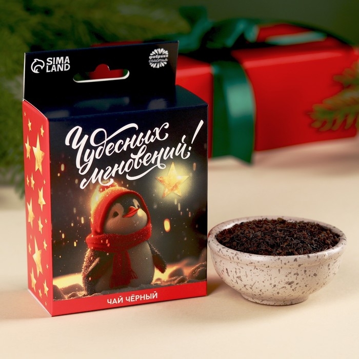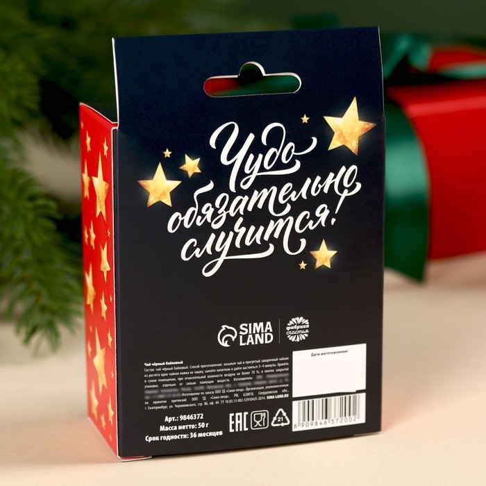 Новый год! Чай чёрный в коробке «Чудесных моментов» с европодвесом, 50 г.