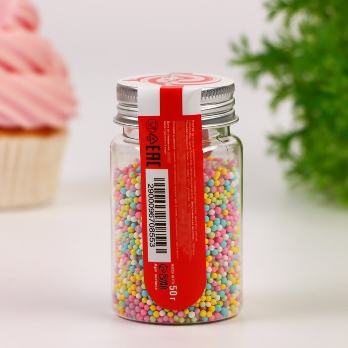 Кондитерская посыпка "Бисер разноцветный", 2 мм, 50 г