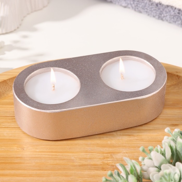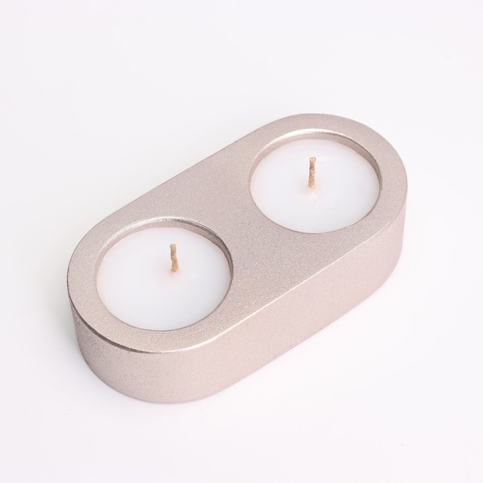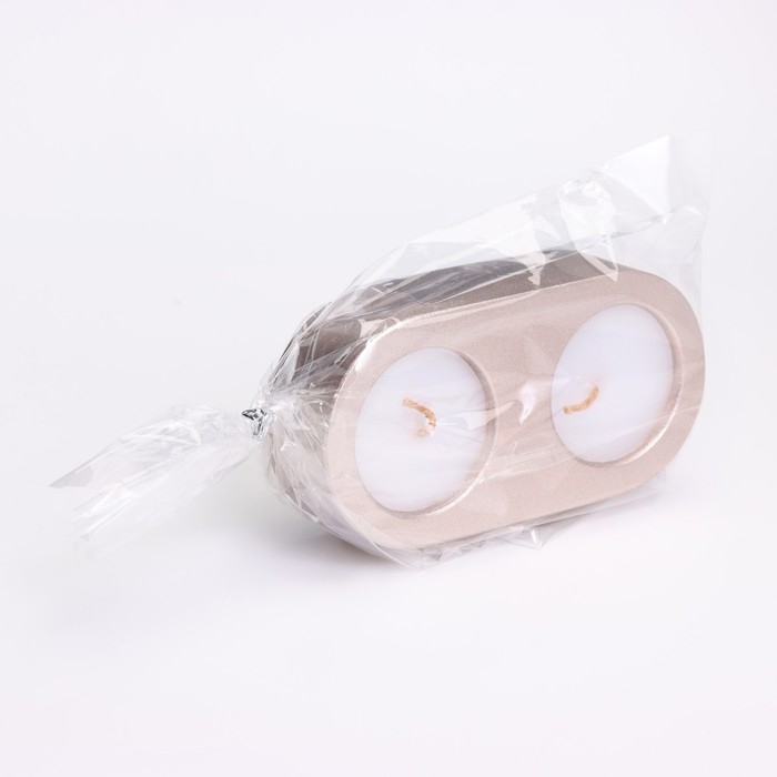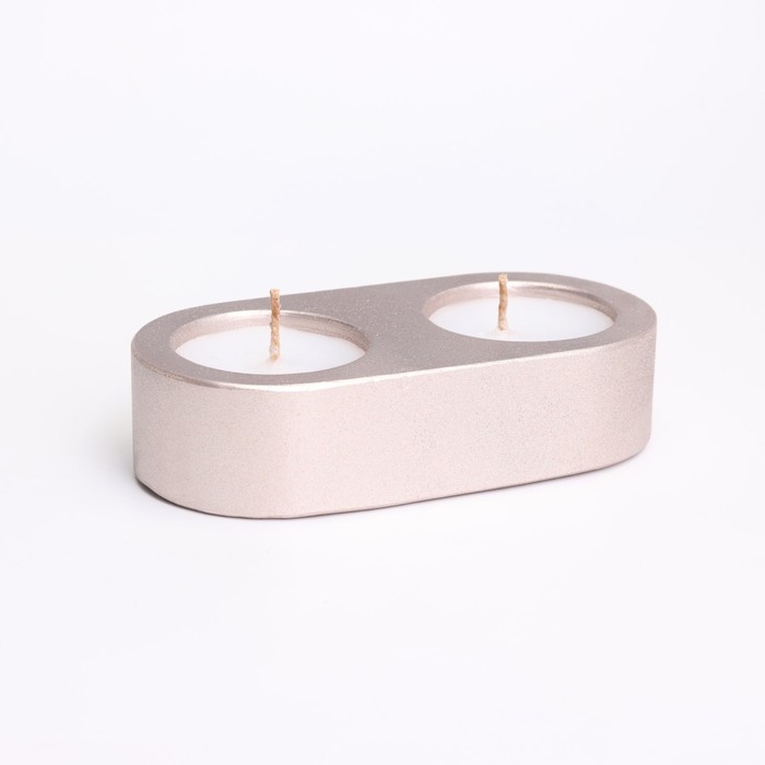 Свечи "Мрамор" в овальном подсвечнике из гипса,12х6х3см, шампань