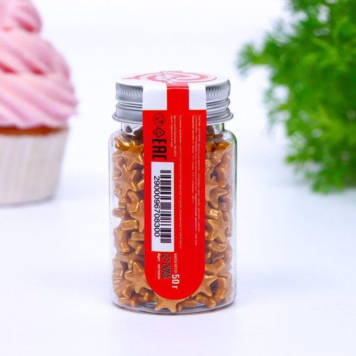 Кондитерская посыпка «Звезда большая» золотая, 50 г