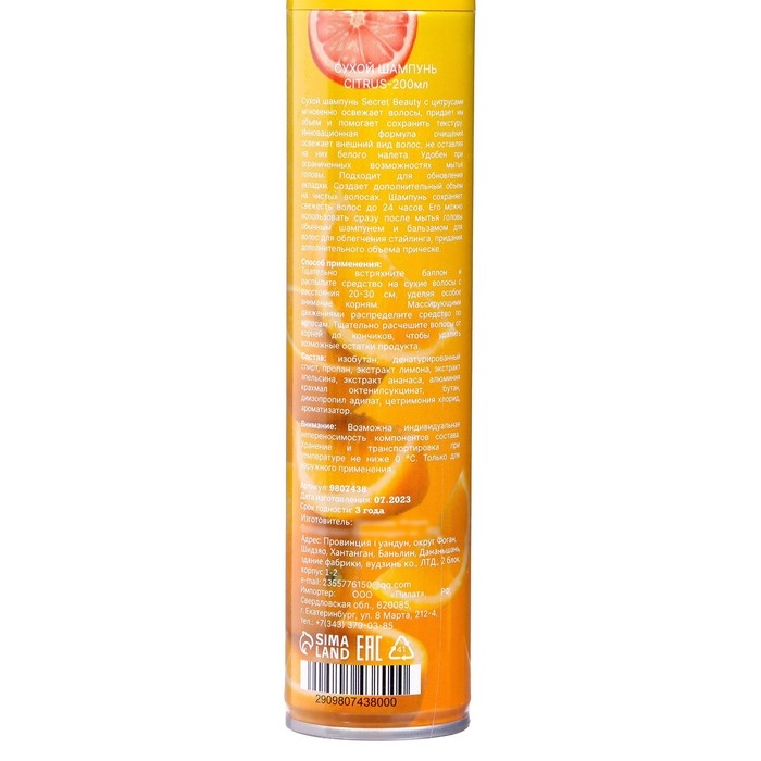 Сухой шампунь Secret Beauty «Цитрус», 200 мл