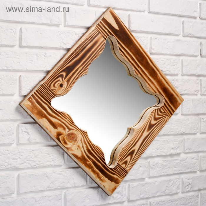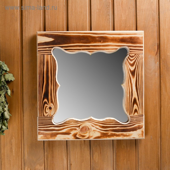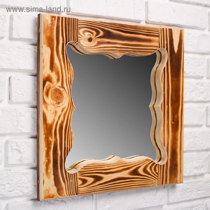Зеркало резное "Квадрат" с полкой, обожжённое, 53×53×15 см