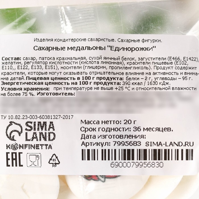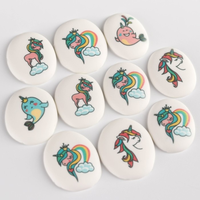 Посыпка медальоны сахарная с картинкой микс: «Единороги» для декора капкейков, торта, напитков, 20 г.