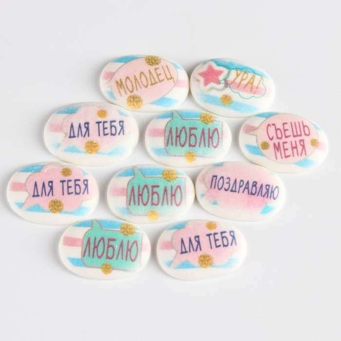 Посыпка медальоны сахарная с картинкой микс: «Милые слова» для декора капкейков, торта, напитков, 20 г.
