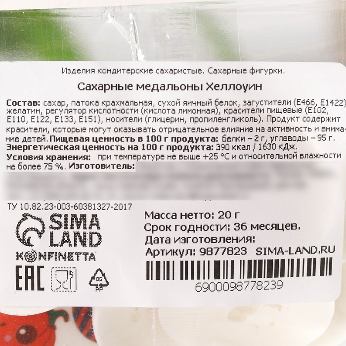 Посыпка медальоны сахарная с картинкой микс: «Хэллоуин», для декора капкейков, торта, напитков, 20 гр